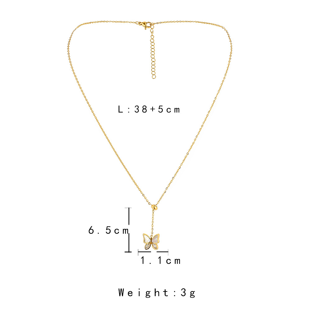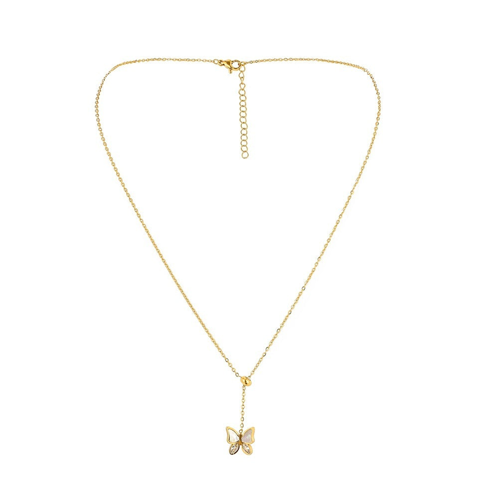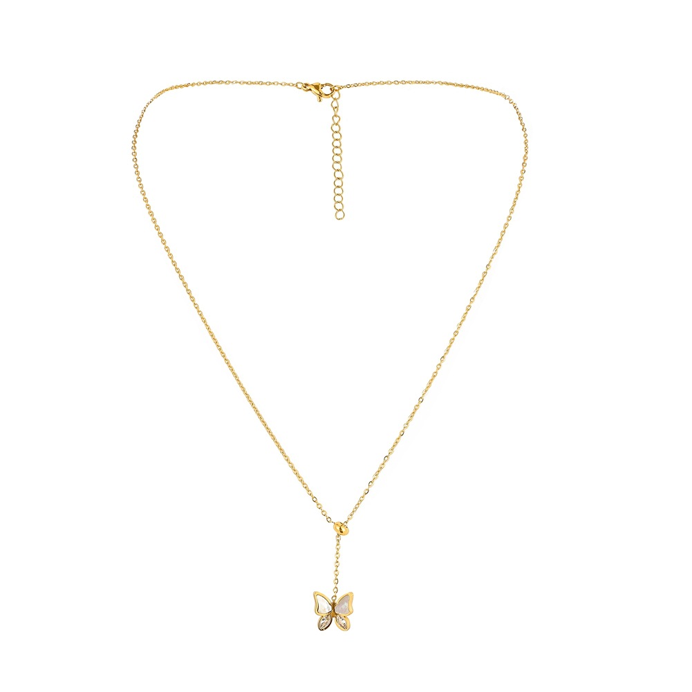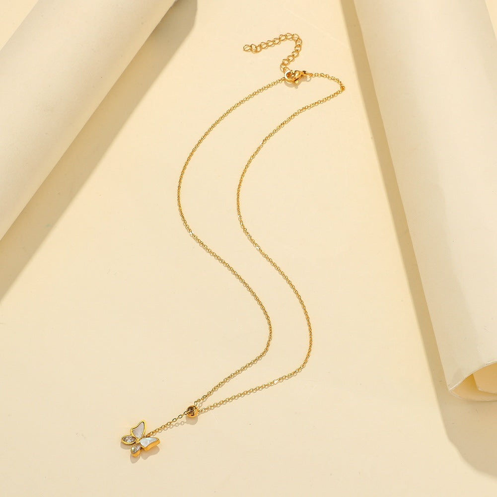 Ins French Style Fairy Butterfly Shell Pendant Simple Stainless Steel Adjustable Sweet Elegance Colorful Butterfly Short Necklace